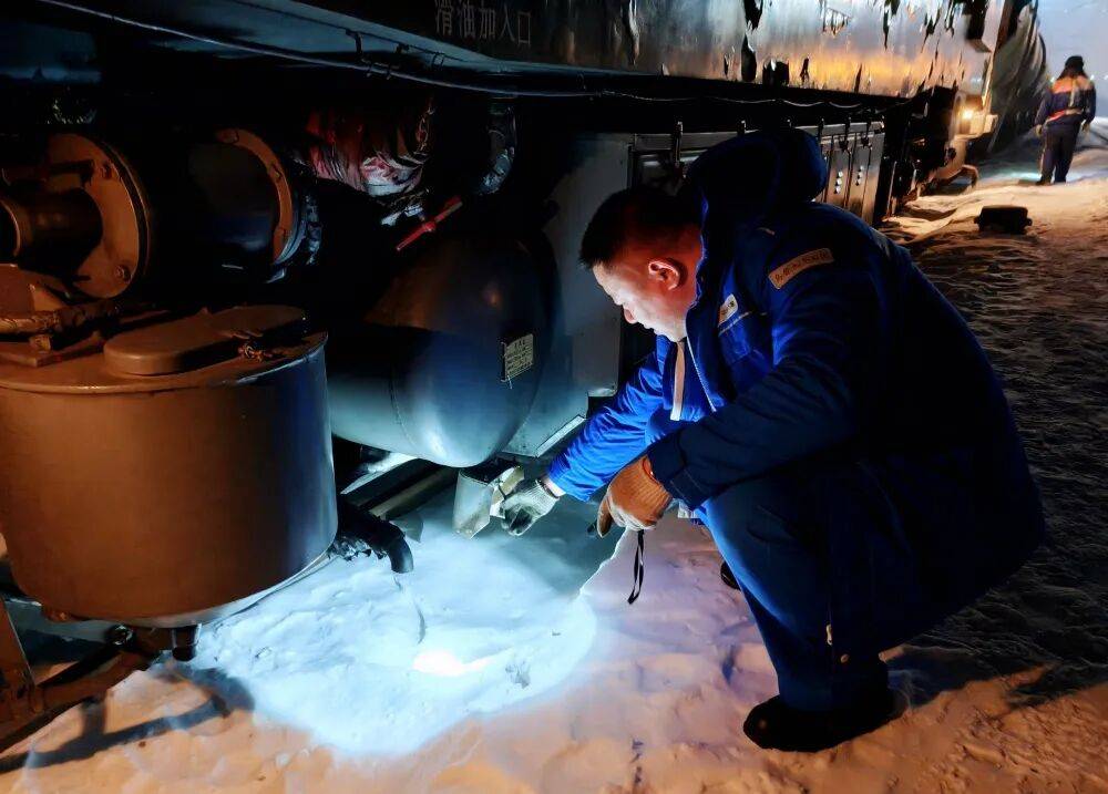 春节期间,营销调运部机运站的火车司机手握操纵杆,驾驶着装载化肥、原油、苯的机车穿梭于铁道线,绘就了节日里一道独特的风景线。傍晚七点,室外气温降至零下十四五度,火车司机朱志敏带着副司机胡鑫细致地进行出车前检查。今年是朱志敏第20个在岗春节,他一边用手电筒逐一排查机车部件,一边叮嘱身旁徒弟:“春节期间更要细致,每一颗螺丝都关系着安全。”从车钩、制动系统,到电气线路、燃油管路,他们以专业与严谨确保机车“零隐患”启动。